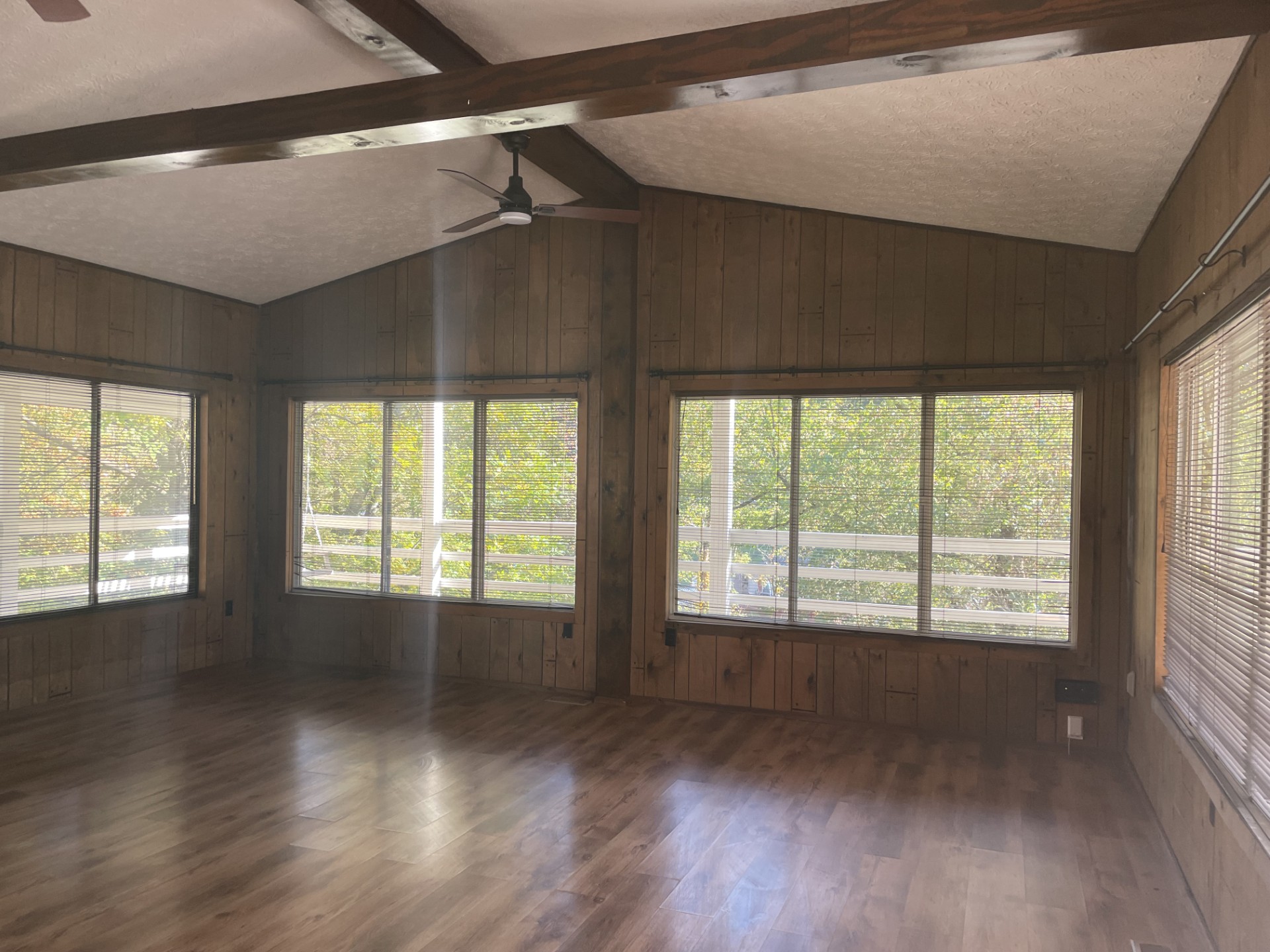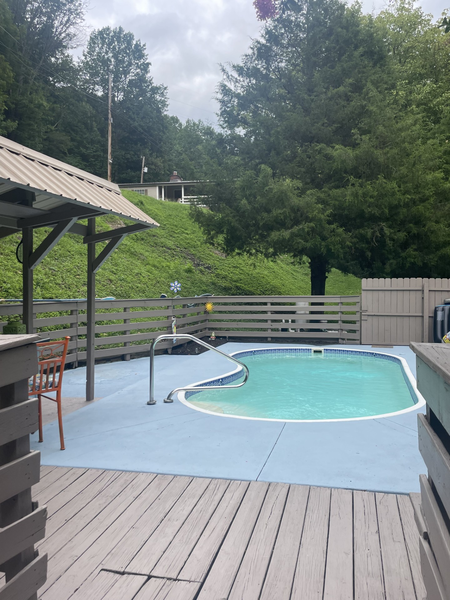 Country Retreat! Peaceful 2-3 bedroom, 2-bath home with garage, nestled on appx 3.5 acres of scenic land, located between Paintsville and Prestonsburg. The inviting living room features three walls of windows, a cozy fireplace and wooden beam ceilings that create a warm, rustic atmosphere. Enjoy outdoor living with a partial wrap-around porch accessible from both kitchen and living room – perfect for entertaining or taking in the views. In-ground pool w/facility to keep the party outside, ideal for fun-filled and relaxing summer days. Also has additional hookup for trailer or camper.